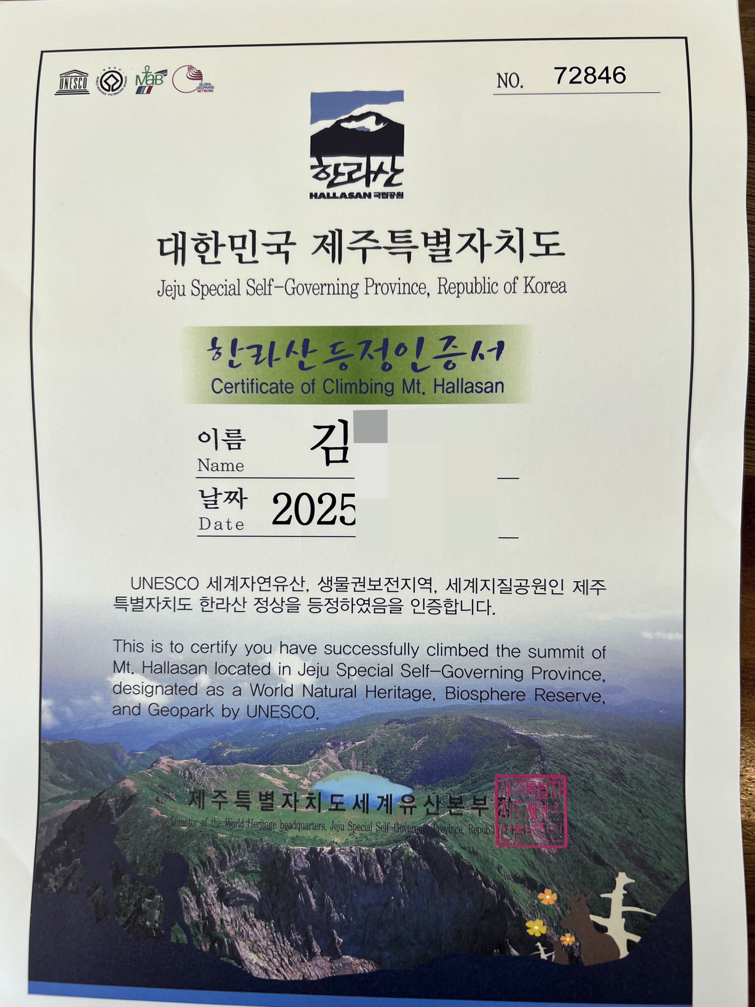 그래서 등반완료증은 뽑아가지 못하시는 분이 많아요