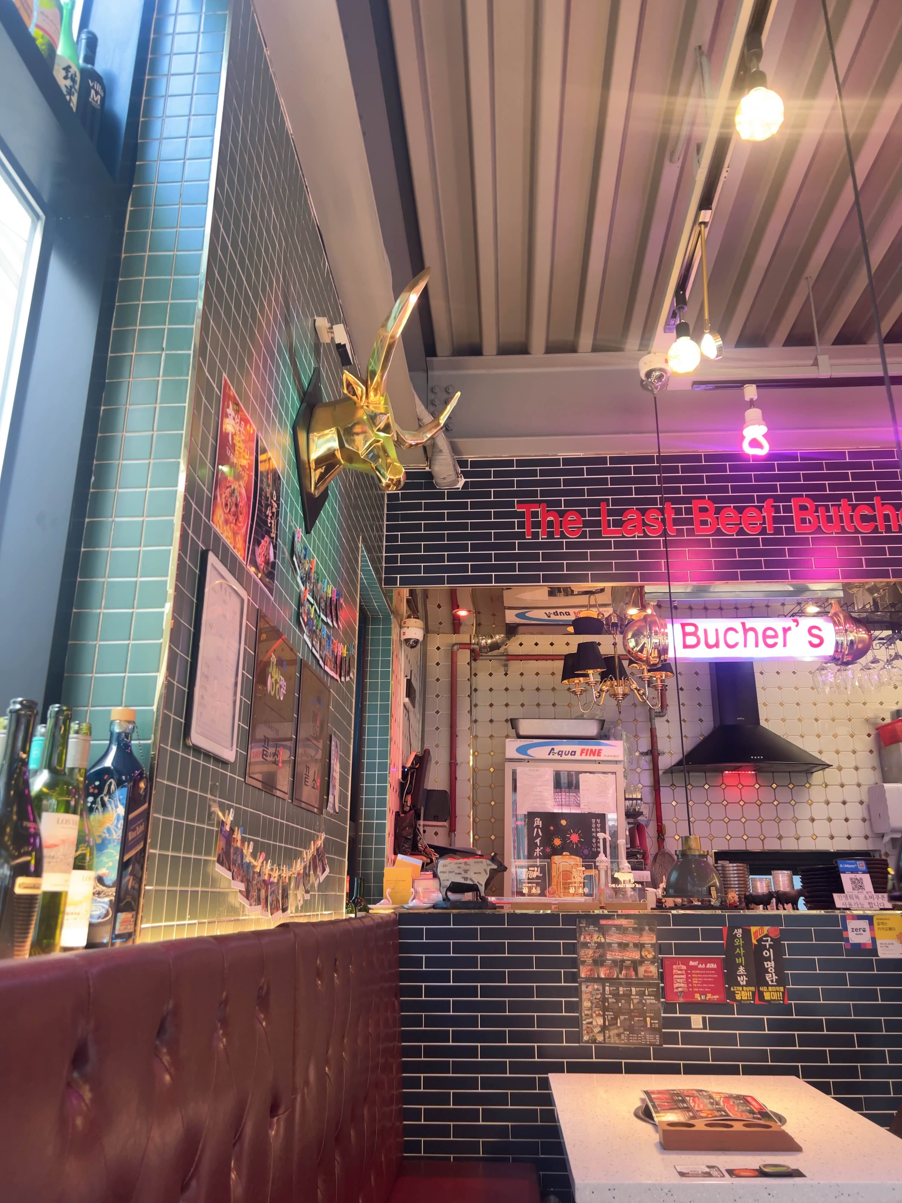 한쪽은 고기를 내오는 정육점 같은 분위기