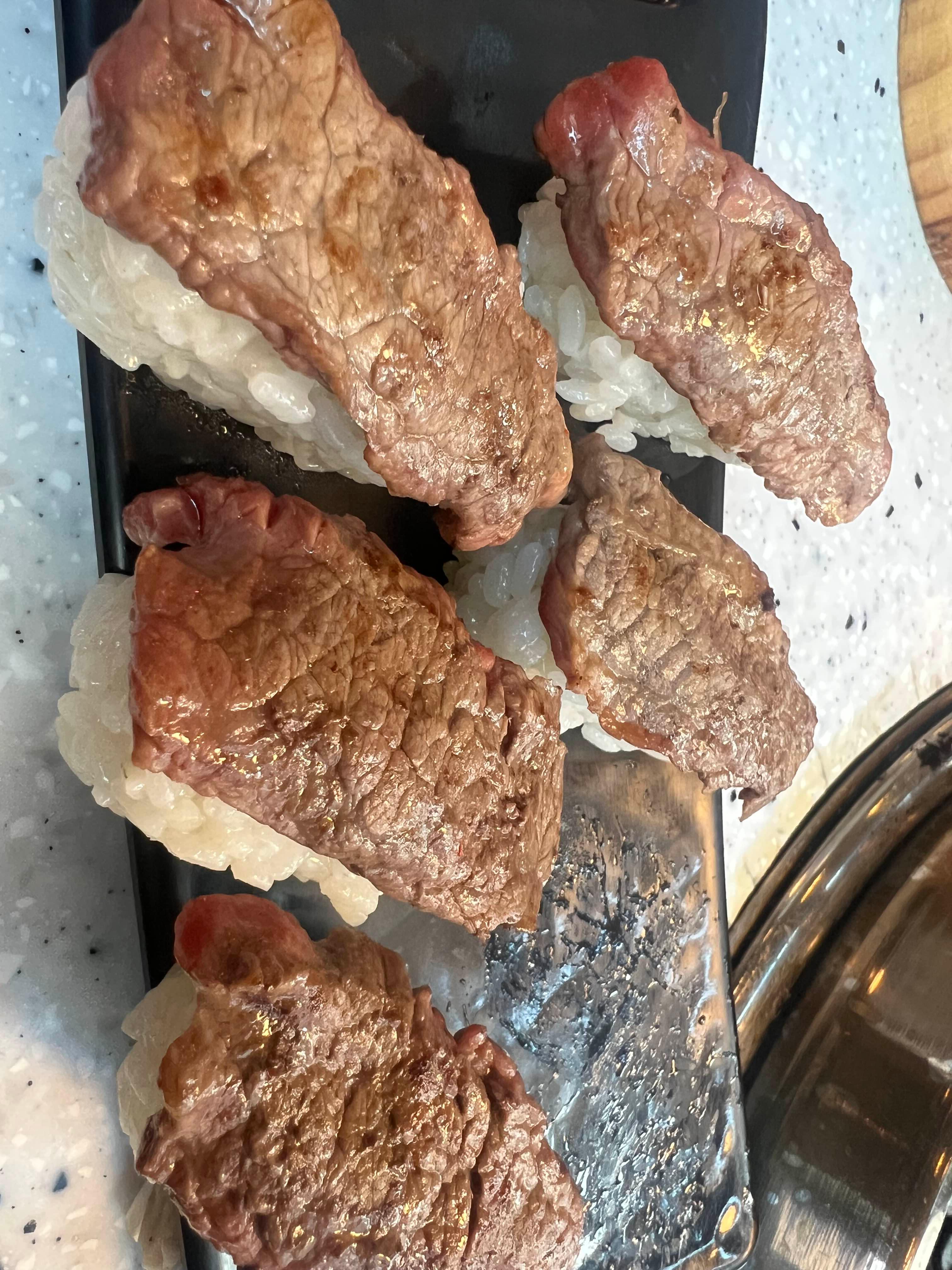 고기가 나오자마자 아버지가 먼저 마블링을 보시더니