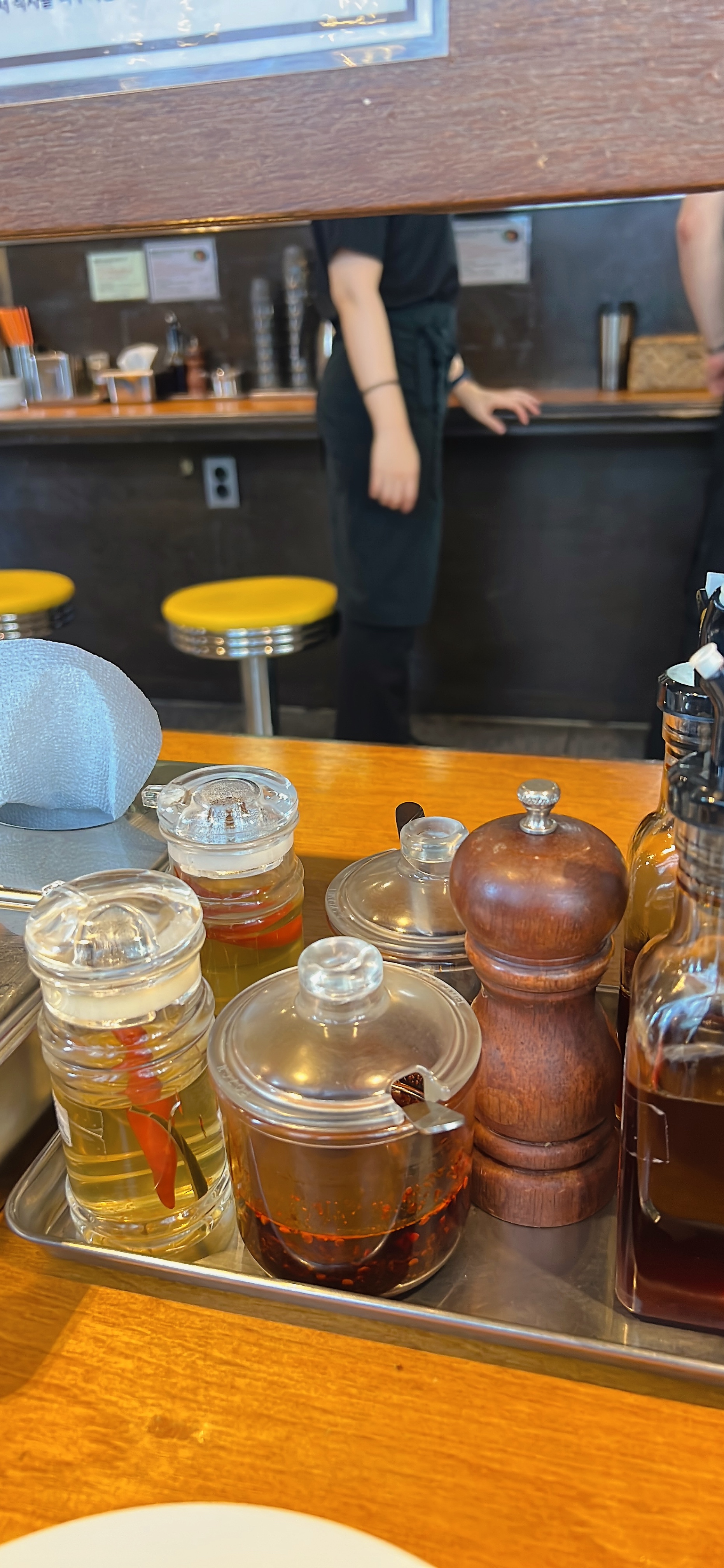 꾸준히 계속 손님이 들어와서 자리를 순서대로 앉아서 먹습니다.