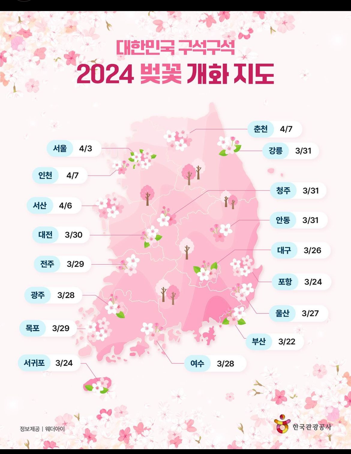 한국관광공사에서 개화 지도를 올려주셨습니다.