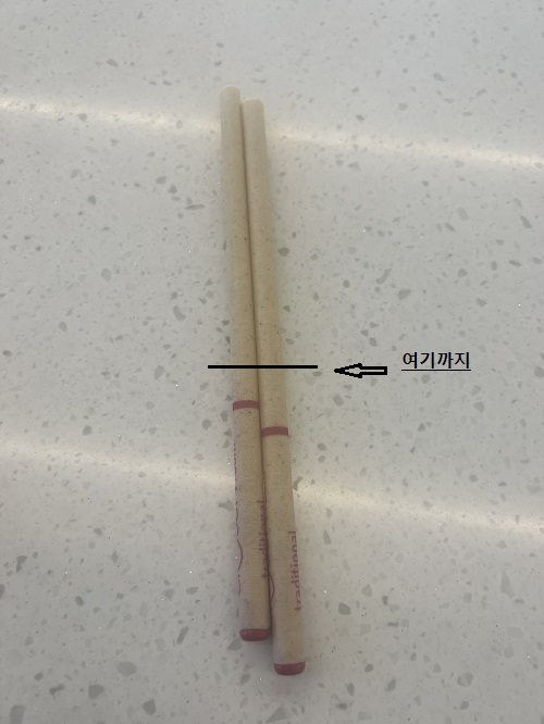 6) 불을 붙인다고 말씀을 드린 후 불을 붙여 빨간선 10cm 전까지 오면 다했다고 말씀드린 후 준비해 두었던 볼에 넣어 불을 꺼 줍니다.