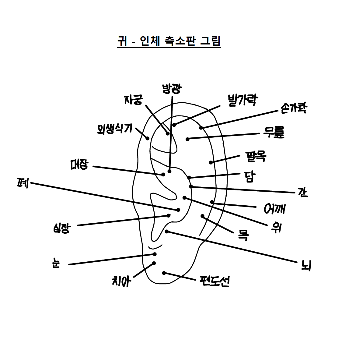 인체축소판 귀의 혈점은 중국 전통 의학 및 한의학에서 중요한 개념 중 하나입니다.  귀에 있는 다양한 점을 나타내며, 이 점들은 인체의 다양한 부분과 기관에 대한 반사 지점으로 간주됩니다. 인체축소판 귀의 혈점은 인체(鍼灸), 즉 침구(needle insertion) 및 마사지(마사지)와 같은 치료 기법에서 사용되며, 귀를 통해 몸 전체의 건강을 개선하거나 질병을 치료하는 데 도움을 줄 수 있다고 여겨집니다. 인체축소판 귀의 혈점은 귀에서 특정 위치를 가리키며, 각 위치는 다른 기관, 기능 또는 질병과 연결되어 있을 수 있습니다. 예를 들어, 귀의 특정 부분이 심장, 폐, 소장 또는 뇌와 연결된다고 여겨집니다. 침구 또는 마사지로 이 점을 자극하면 해당 기관 또는 기능의 활성화나 조절에 도움을 줄 수 있다고 믿어집니다. 인체축소판 귀의 혈점은 전통 중국 의학 및 한의학에서 오랜 역사를 가지고 있으며, 일부 전문가들은 이를 대체 요법 또는 보조 요법으로 사용합니다. 이렇듯 귀는 아주 중요 부위이며 귀의 혈점을 누르는것 처럼 파동을 이용한 이어테라피를 함께 알아보도록 하겠습니다.