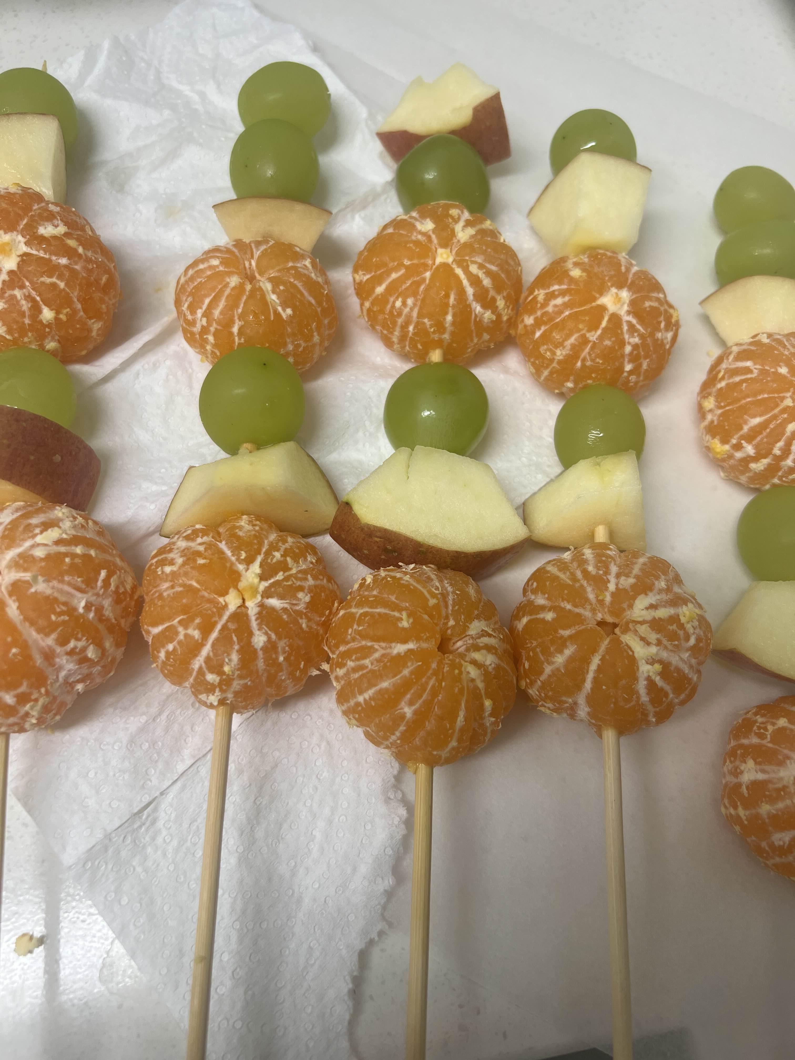 원하는 과일을 잘라서 꼬치에 끼워둡니다.