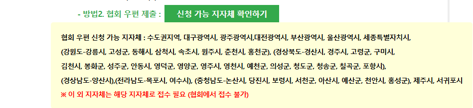 - ※ 신청 가능 지자체가 아닌 경우, 해당 지자체로 접수 필요